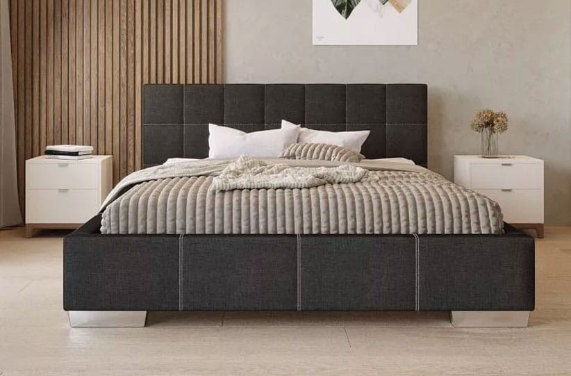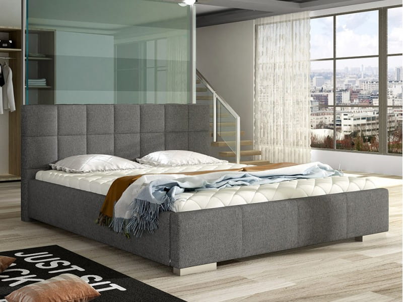 Elegancki zagłówek z przeszyciami w kształcie kwadratów wpiszę się w każde wnętrze. Zagłówek jest bardzo wygodny i daje komfort odpoczynku w pozycji siedzącej. Możliwe jest indywidualne dopasowanie rodzaju materiału tapicerskiego użytego do obicia łóżka, jak również zamówienie go w niestandardowym wymiarze.