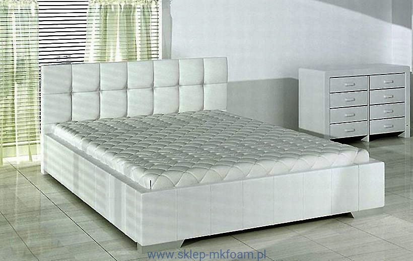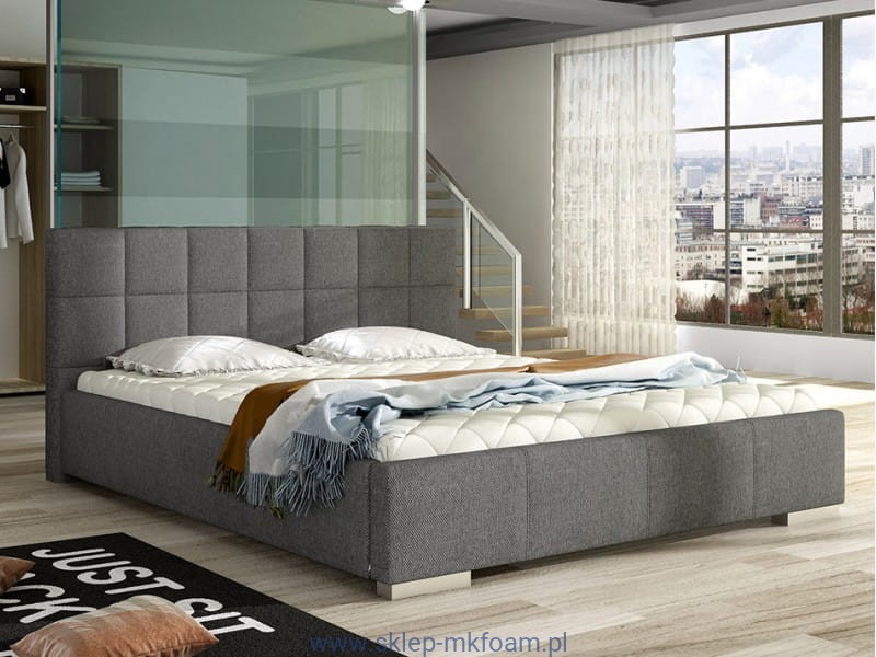 Elegancki zagłówek z przeszyciami w kształcie kwadratów wpiszę się w każde wnętrze. Zagłówek jest bardzo wygodny i daje komfort odpoczynku w pozycji siedzącej. Możliwe jest indywidualne dopasowanie rodzaju materiału tapicerskiego użytego do obicia łóżka, jak również zamówienie go w niestandardowym wymiarze.