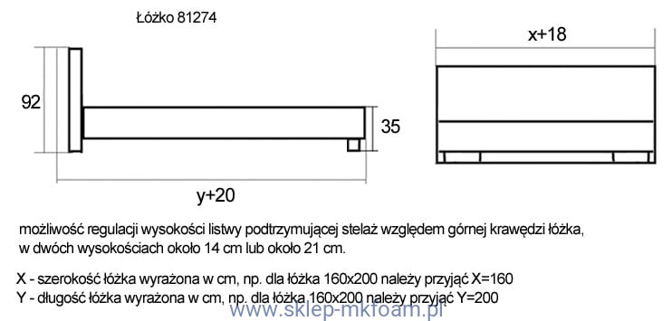 Wymiary mebli mogą się różnić od podanych ze względu na różnorodność struktury tkanin jak i specyfikę wykonania łózka.
