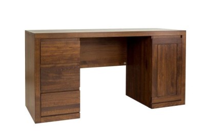 Proste biurko DBR 402 z litego drewna bukowego. Pod obszernym blatem zaprojektowano trzy pojemne, bezuwchytowe szuflady, w których pomieszczą się wszelkie przybory potrzebne do pracy i kontener z drzwiczkami. Dzięki prostej bryle idealnie wpasuje się do nowoczesnych i klasycznych pomieszczeń.