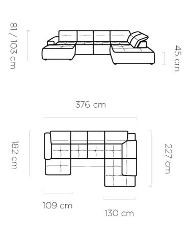 - Głębokość: 182 i 227 cm;
