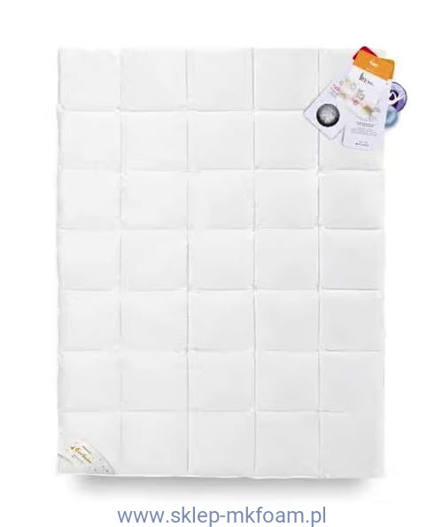 Kasetonowa konstrukcja. Kratki są szczelnie zamknięte, dzięki czemu puch pozostaje na swoim miejscu i jest równomiernie rozłożony. Kołdra szyta w technologii ciepłego szwu, co zapewnia lepsze właściwości termoizolacyjne. Produkt posiada atest PZH wydany przez Narodowy Instytut Zdrowia Publicznego.