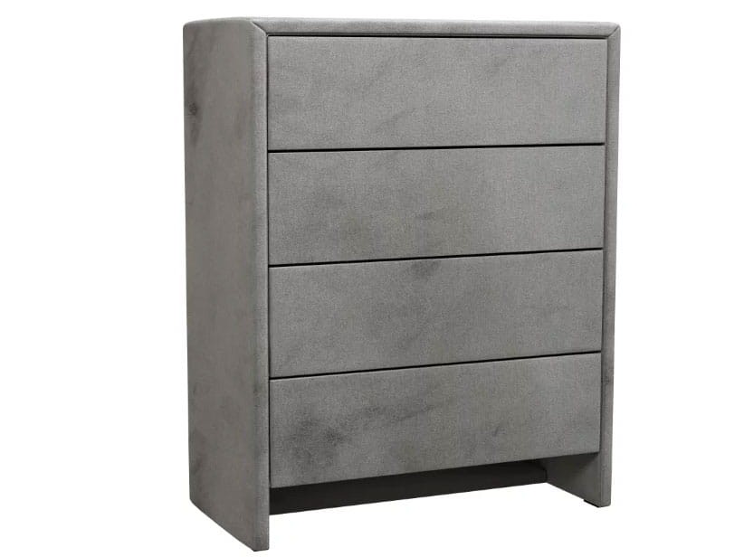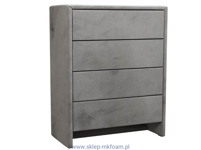 Harmonia i porządek z tapicerowaną komodą w Twojej sypialni. To twój sprzymierzeniec w organizacji przestrzeni. Wyjątkowo elegancka komoda zachwyca czteroma pojemnymi, bezuchwytowymi szufladami otwieranymi na dotyk, rozmieszczonymi w dwóch rzędach, oferująca mnóstwo miejsca na Twoje ubrania, bieliznę, pościel, ręczniki czy dodatkowy komplet pościeli.