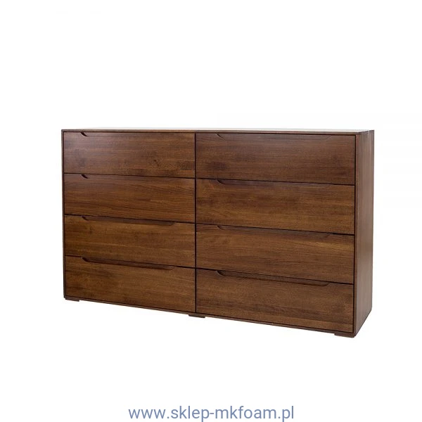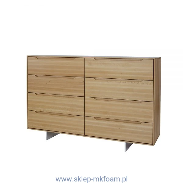 Model DKD420 wyposażono w osiem wyjątkowo pojemnych szuflad, które zapewniają wygodną organizację i dużą przestrzeń do przechowywania. Fronty szuflad zdobią subtelne, dekoracyjne podcięcia – pełniące jednocześnie funkcję uchwytów – co nadaje meblowi nowoczesny, minimalistyczny wygląd.