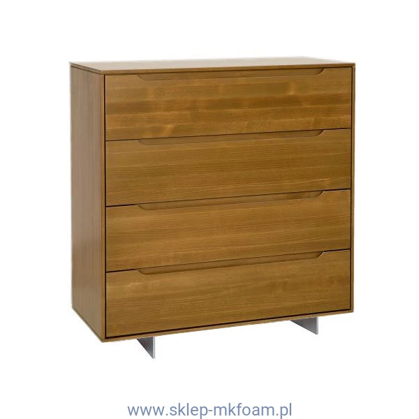 Bukowa komoda DKD424 z kolekcji Modern, została stworzona z myślą o miłośnikach nowoczesnego minimalizmu. Mimo prostej formy zachwyca i przyciąga wzrok już od progu. Solidne, pozbawione zbędnych zdobień fronty dopełniają subtelne, wycięte w drewnie uchwyty, tworzące system otwierania i zamykania. Wyposażona w pojemne i funkcjonalne szuflady idealnie sprawdzi się do przechowywania licznych domowych bibelotów. Jej atutem jest też duży, bukowy blat, na którym pięknie prezentować się będą rodzinne pamiątki lub fotografie. Komoda osadzona została na niewielkich drewnianych nóżkach. Istnieje jednak możliwość dokupienia nóżek aluminiowych o wysokości 10 cm NG 002, jak również nóżek metalowych o wysokości 15 cm NG003. Dzięki takiemu zabiegowi można w prosty sposób zmienić całkowicie charakter i styl mebla.