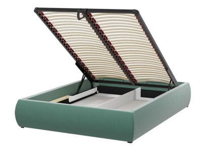 Korpus Boki Rama Metalowa z pojemnikiem na pościel ze stelażem metalowym oraz listwami giętymi zamocowanymi w elastycznych uchwytach ( na zdjęciu dodatkowo materac Venus Multipockect Silver Active nie wchodzi w skład kompletu). Korpus jest przystosowany do zamontowania zagłówka. W Korpusie Boki Rama Metalowa są zastosowane siłowniki pneumatyczne.