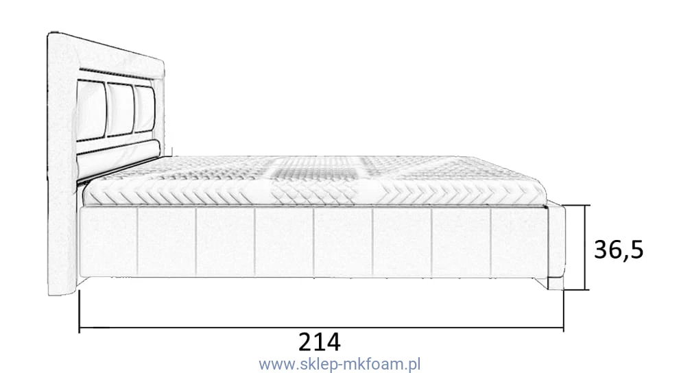 Korpus Boki Szerokie bez stelaża i zagłówka posiada przeszycia pionowe i można zamówić korpus bez przeszyć w cenie podstawowej. Korpus można używać jako samodzielne łóżko, lub skompletować z dowolnym zagłówkiem lub też panelem tapicerowanym z naszej oferty MK foam Koło.
