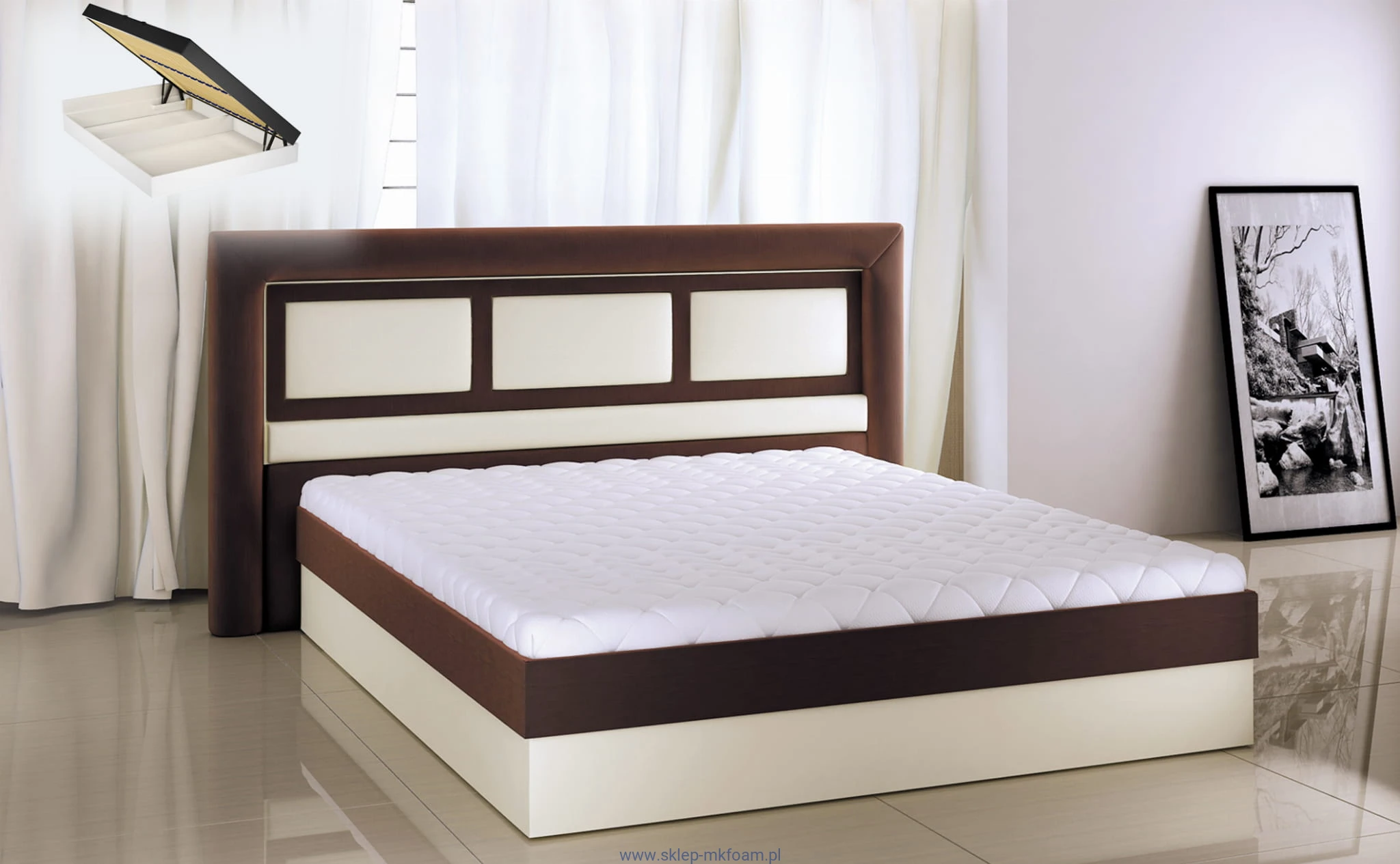Korpus można używać jako samodzielne łóżko, lub skompletować z dowolnym zagłówkiem lub też panelem tapicerowanym z naszej oferty MK foam Koło.