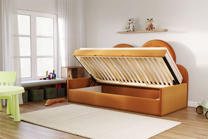 Łóżko w wersji RS posiada bocznie otwierany pojemnik, który zapewnia jeszcze wyższy poziom funkcjonalności, zapewniając dodatkowe miejsce na przechowywanie najpotrzebniejszych przedmiotów. Wymaga dokupienia głównego (górnego) stelaża.