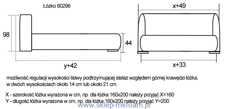 • Szerokość zagłówka +49 cm do szerokości materaca.