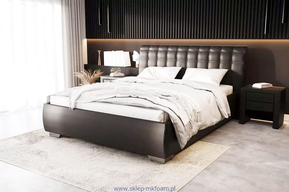 Eleganckie i stylowe łóżko z pikowanym zagłówkiem. Prezentuje się wyjątkowo i zachęca do zdrowego wypoczynku. Dostępne w wielu wersjach kolorystycznych, będzie pasować do każdej sypialni, gdzie króluje styl i szyk. Tapicerowane obicie gwarantuje bezpieczeństwo w użytkowaniu.