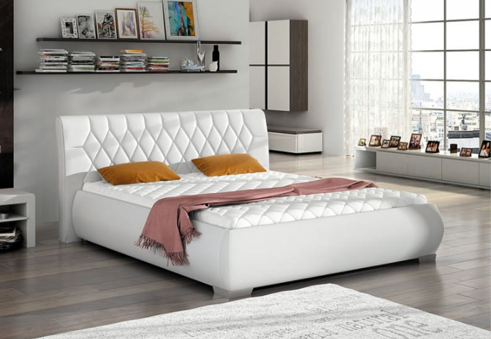 Zagłówek łóżka w tylnej części jest otapicerowany. Łóżko dostępne w wersji z zagłówkiem z kryształkami.