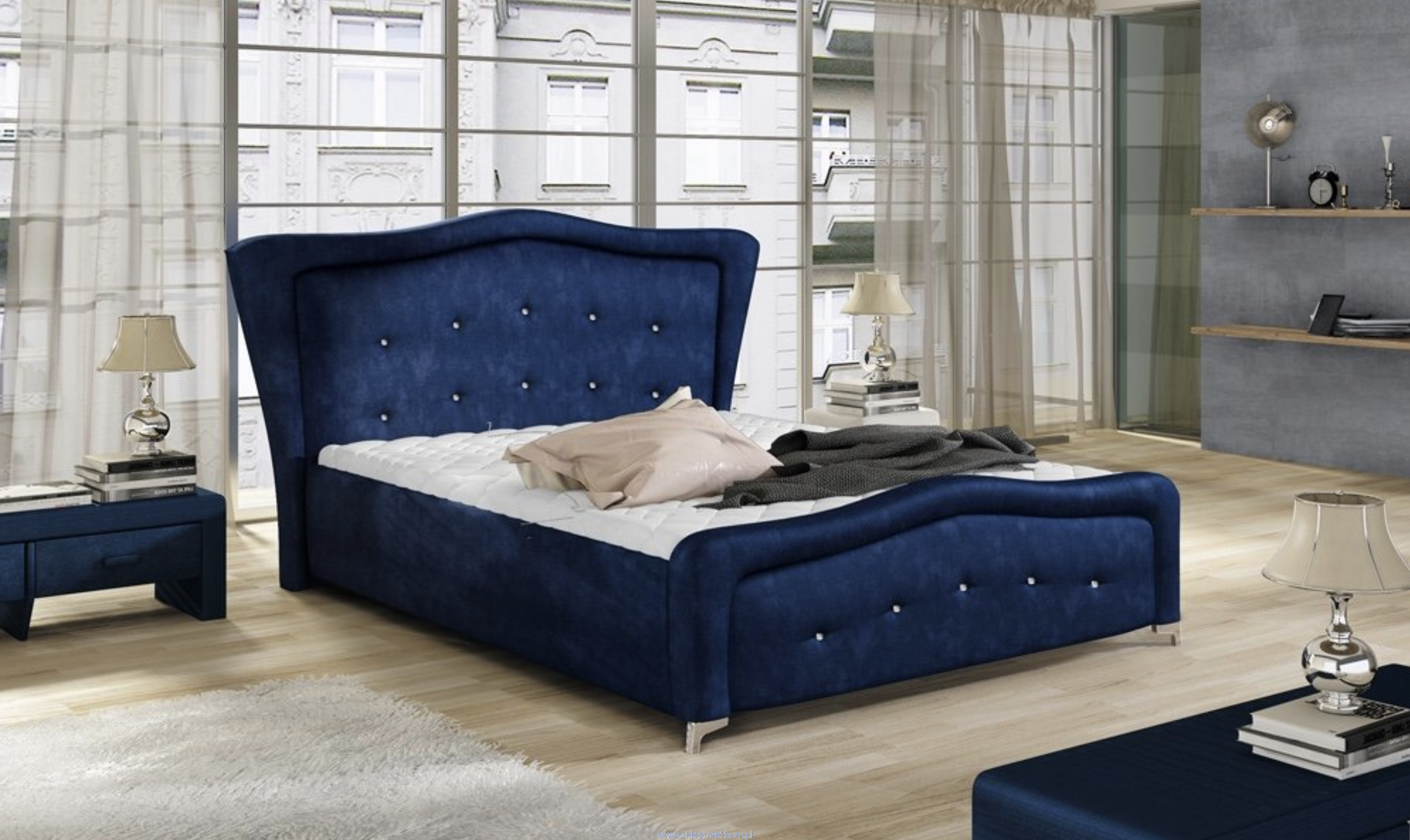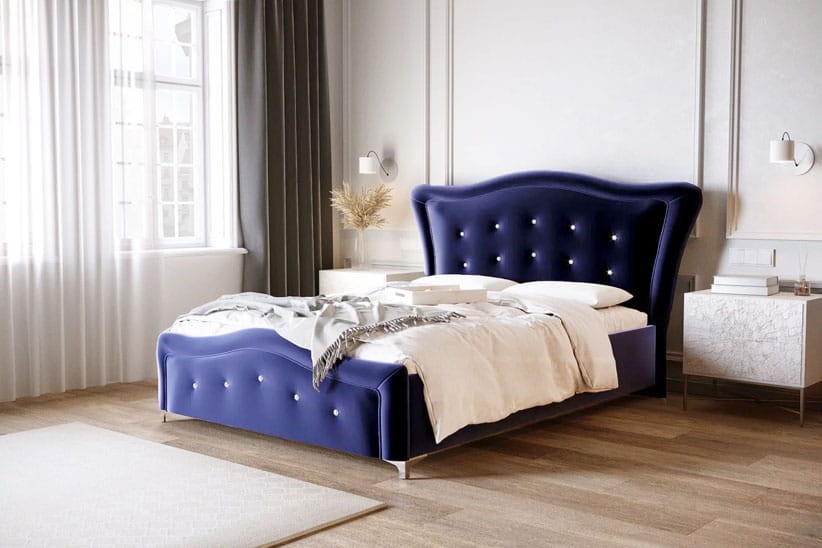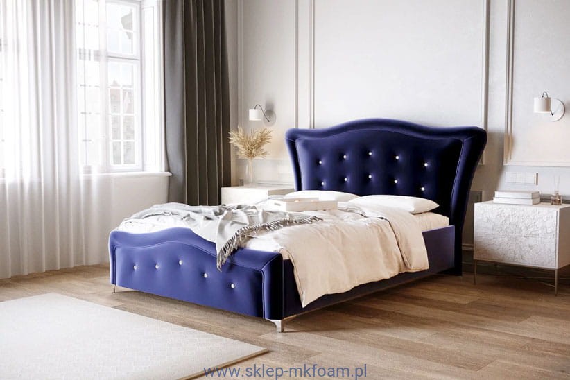 Ekskluzywna bryła łóżka świetnie wkomponuje się w pomieszczenia większe, ale urządzone bez przepychu, gdyż łóżko to samo w sobie może stanowić zachwycający element dekoracyjny sypialni. A wszystko to zależy od wyboru właściwej tkaniny obiciowej -  galeria tkanin.