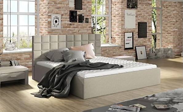 Geometrycznie tapicerowane łóżko o prostej, klasycznej konstrukcji, którego rama oraz zagłówek tworzą ciekawą kompozycję. W łóżku zastosowano efektowne przeszycia. Doskonale sprawdzi się w każdym typie sypialni, ubogacając ją urodą prostej linii. Konstrukcja z płyty w obiciu z tkaniny meblowej, w szerokiej gamie kolorystycznej. Łózko 81231 tapicerowane tkaniną meblową do wyboru z VI grup cenowych w standardzie. Łóżko bez stelaża lub w wersji ze skrzynia i stelażem na podnoszonej ramie metalowej. Łóżko tapicerowane ma pięknie, regularnie przeszyty zagłówek, który wraz z prosta skrzynią daje ciekawy efekt wizualny. Prosta forma łóżka nadaje się do każdej sypialni.