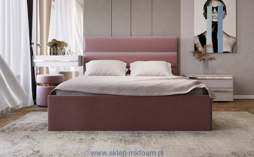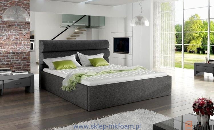 Prosta konstrukcja ramy w połączeniu z zagłówkiem który jest bardzo wygodny i posiada grube poziome miękkie wałki tworzy klasyczną bryłę wpasowującą się w każde wnętrze. Tak naprawdę  łózko to może dokonać ogromnej metamorfozy poprzez dobór odpowiedniej tkaniny.