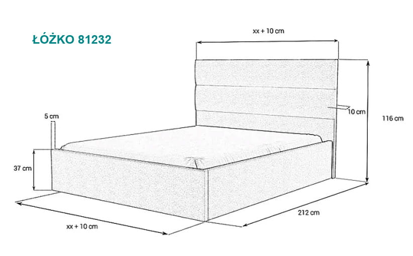 • Szerokość zagłówka: +10 cm do szerokości materaca;