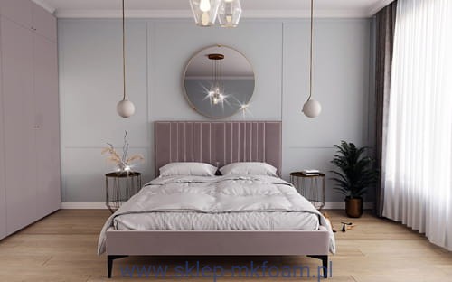 Doskonale wpasuje się zarówno do klasycznej, jak i nowoczesnej sypialni a szeroka gama tkanin obiciowych pozwoli stworzyć wymarzony i pasujący do koncepcji model łóżka sypialnianego.