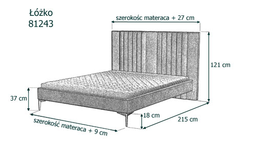 •  Szerokość wezgłowia:    zagłówek jest szerszy o 16 cm od materaca;