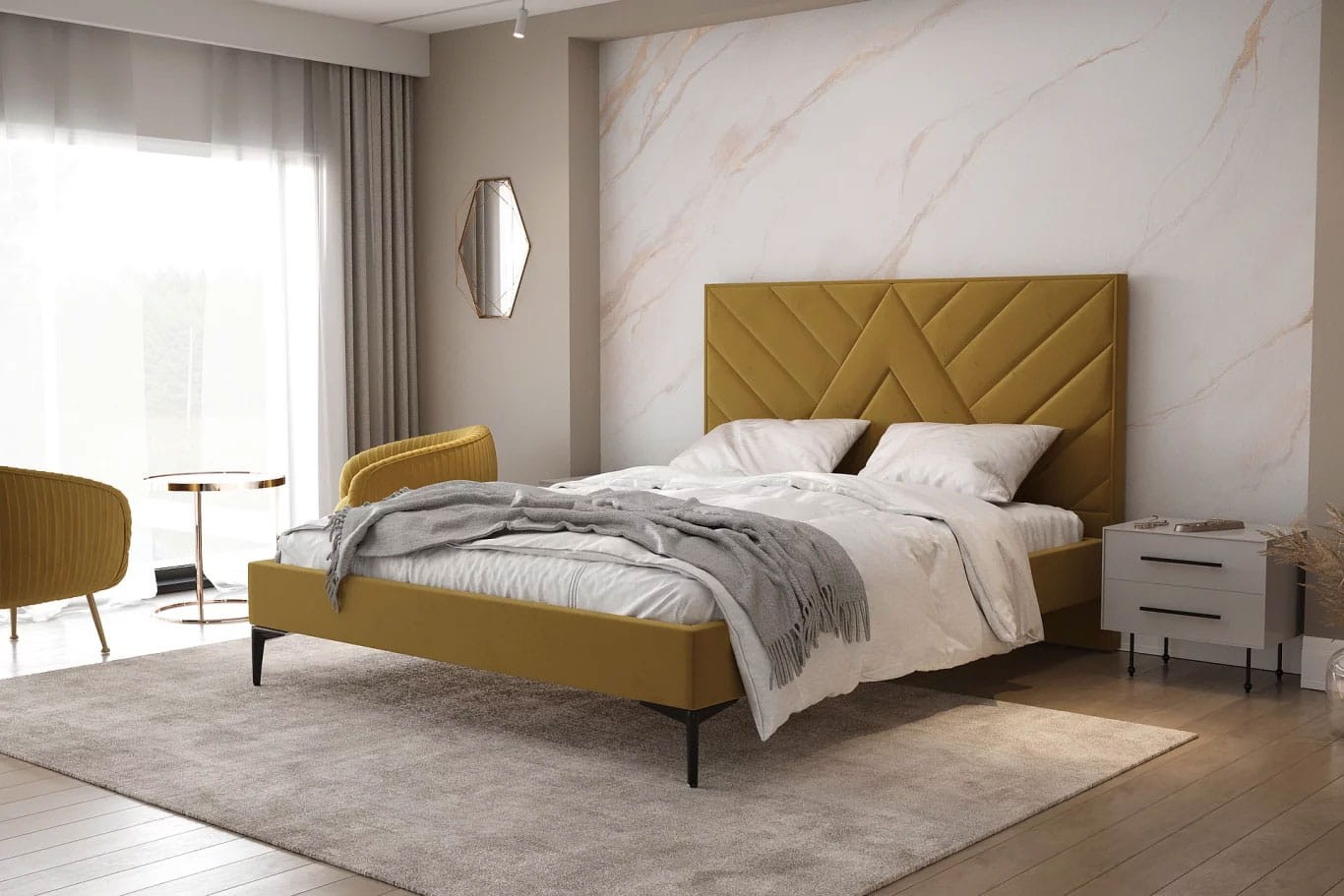 Doskonale wpasuje się zarówno do klasycznej, jak i nowoczesnej sypialni a szeroka gama tkanin obiciowych pozwoli stworzyć wymarzony i pasujący do koncepcji model łóżka sypialnianego.
