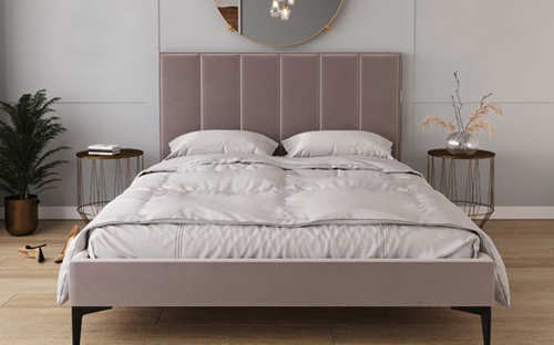 to nowoczesne łóżko, które z łatwością znajdzie miejsce w każdej sypialni. Stonowane, pionowe pikowanie zamknięte w w ramie tapicerowanej jest bardzo estetyczne. Solidna konstrukcja ramy rama łóżka została wsparta na wysokich, metalowych nóżkach.