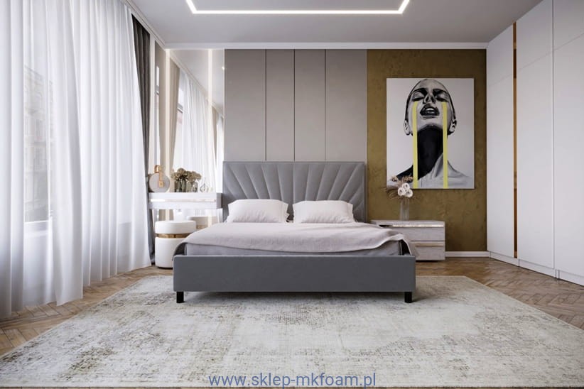 Łóżko tapicerowane 81246 Łóżko M&K Foam Koło ma solidny,  zagłówek oraz ciekawie pikowany.