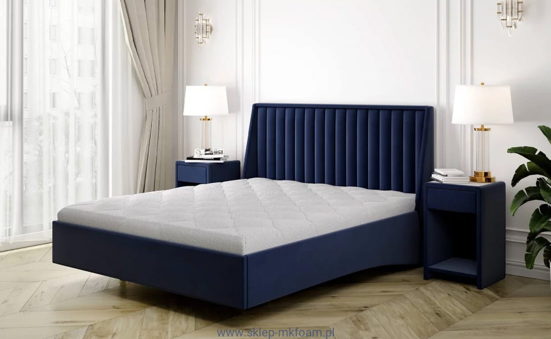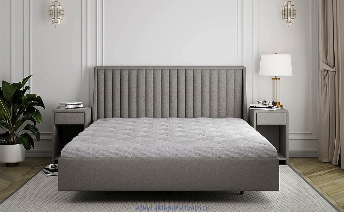 Wszystkie materiały użyte do produkcji charakteryzują się najwyższą jakością, co zapewnia trwałość na długie lata. Oprócz standardowych rozmiarów, łóżko dostępne jest również w niestandardowych wymiarach, umożliwiając idealne dopasowanie do indywidualnych potrzeb i przestrzeni. Dodatkowo, szeroki wybór tkanin obiciowych pozwala na stworzenie mebla idealnie współgrającego z aranżacją wnętrza. Aby w pełni cieszyć się komfortem i funkcjonalnością, rekomendujemy zastosowanie stelaża i materaca z oferty M&K foam.