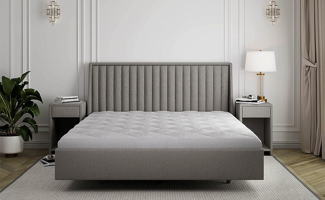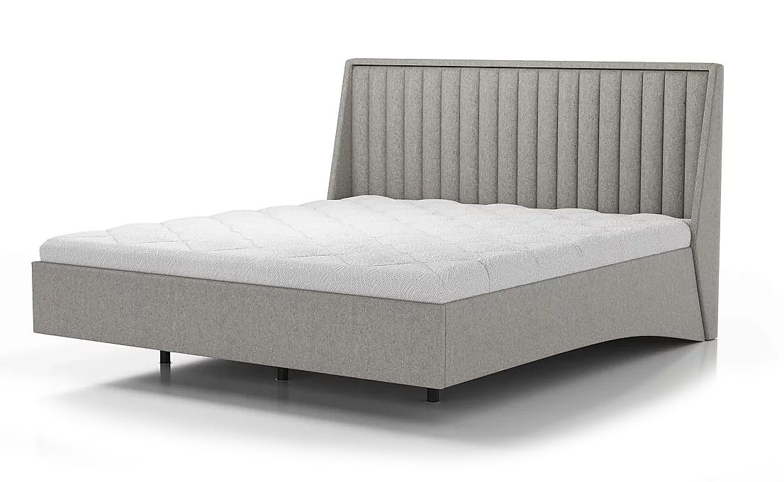 Wyjątkowo nowoczesne łóżko tapicerowane, którego innowacyjna konstrukcja ramy stwarza iluzję unoszenia się nad podłogą, zachowując przy tym pełną stabilność dzięki solidnym ukrytym nóżkom. Charakterystycznym elementem tego modelu jest masywny zagłówek, otoczony grubą, wytrzymałą ramą z opcją personalizacji wzoru pikowania. To unikalne połączenie nadaje łóżku centralną rolę w sypialni, definiując jej wyjątkowy charakter.