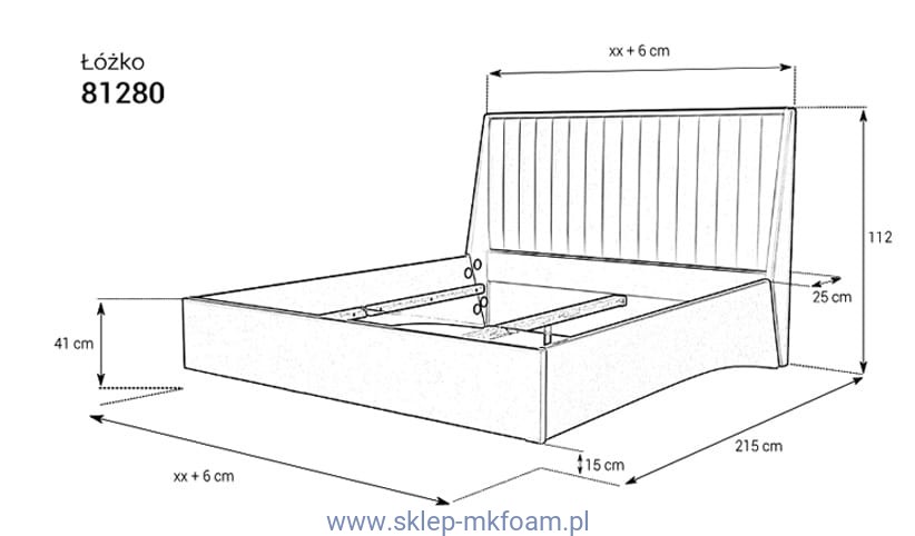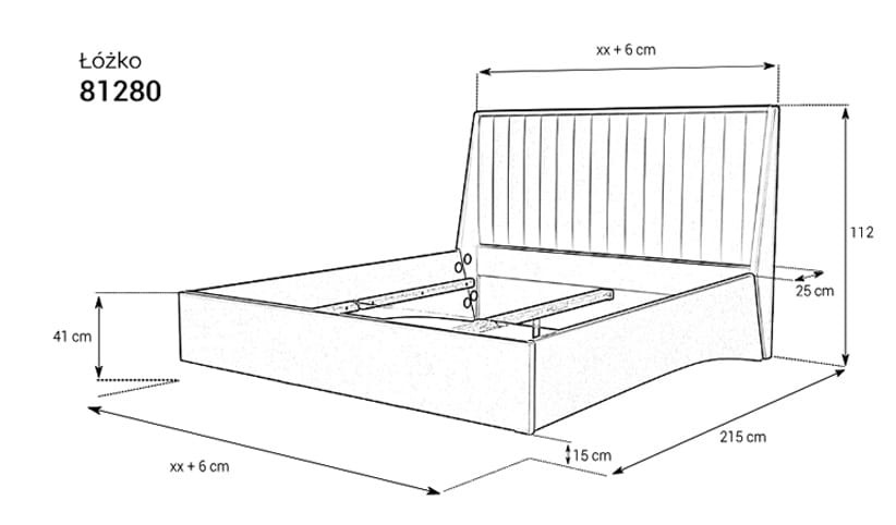 • Szerokość zewnętrzna korpusu: szerokość materaca + 6 cm;