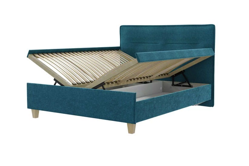 83091 to nowoczesne łóżko ze skrzynia na pościel i podnoszonymi z boku stelażami, które z łatwością znajdzie miejsce w każdej sypialni.  Solidna konstrukcja ramy rama łóżka została wsparta na wysokich nóżkach.