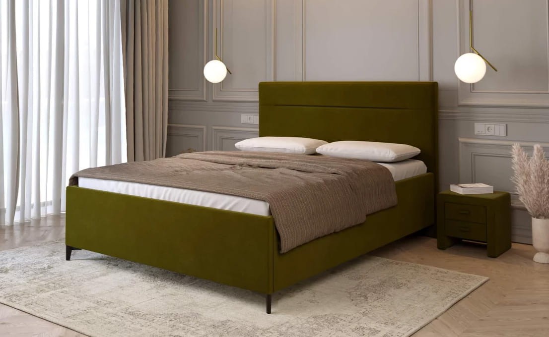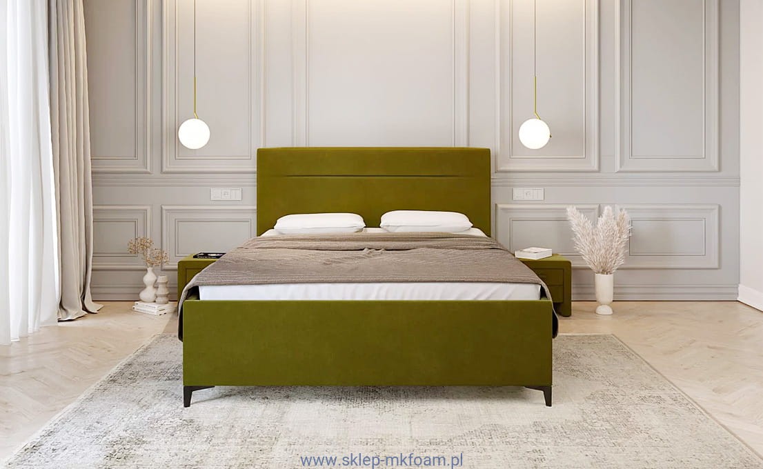 Solidna konstrukcja z metalową ramą i elastyczny stelaż z 48 listwami gwarantują trwałość i komfort użytkowania. Dostępność w szerokiej gamie tkanin pozwala dopasować łóżko do indywidualnych preferencji i stworzyć wyjątkową aranżację sypialni. Tkanina na zdjęciach 10390.