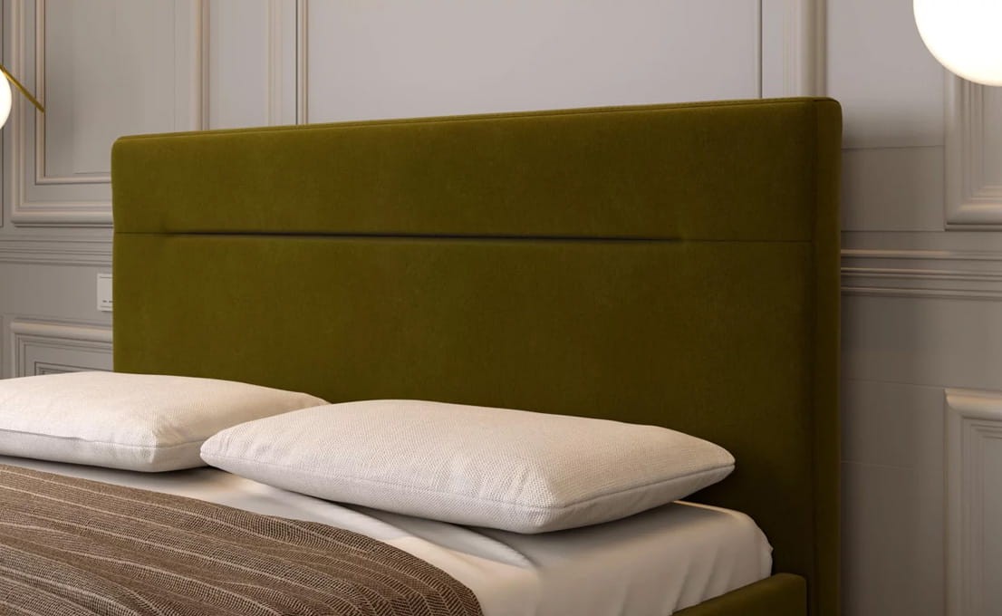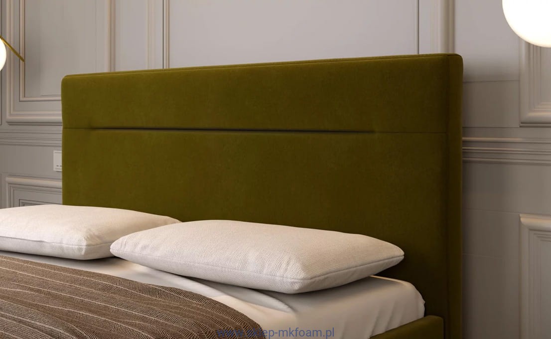 Elegancja i funkcjonalność w jednym łóżku. Nasze łóżko to kwintesencja nowoczesnego designu i wysokiej jakości wykonania. Prosty, minimalistyczny zagłówek z delikatnym wzorem dodaje mu subtelności, a jednocześnie doskonale wpisuje się w różnorodne aranżacje wnętrz. Wysokość 118 cm i grubość 8 cm sprawiają, że łóżko jest zarówno wygodne, jak i estetyczne. Praktyczny pojemnik na pościel, który łatwo otworzysz dzięki siłownikom gazowym, to dodatkowe miejsce do przechowywania kołder, poduszek czy sezonowej odzieży.