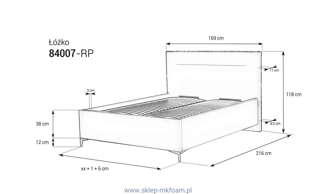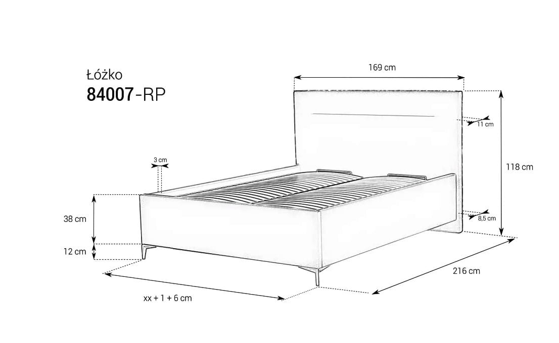 RP-  łóżko wyposażone w stelaż Prosty na ramie metalowej z 48 listwami giętymi oraz pojemnikiem na pościel.