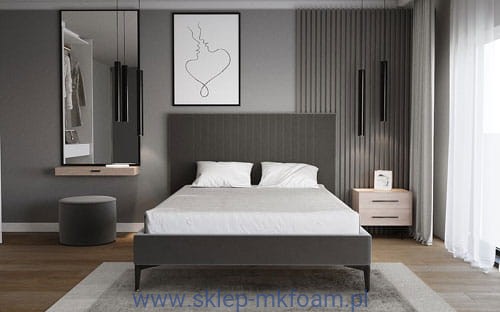 Doskonale wpasuje się zarówno do klasycznej, jak i nowoczesnej sypialni a szeroka gama tkanin obiciowych pozwoli stworzyć wymarzony i pasujący do koncepcji model łóżka sypialnianego.