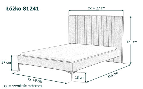 • całkowita szerokość łóżka: szerokość materaca + 9 cm;