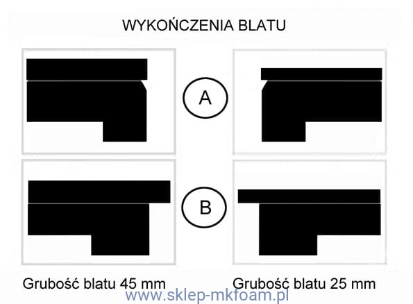 Możesz wybrać sposób wykończenia blatu A lub B.