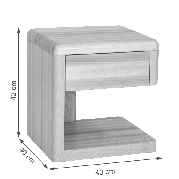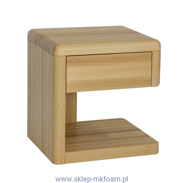 Szafka nocna z litego drewna bukowego z zaokrąglonymi krawędziami, perfekcyjnie wykonana i zaprojektowana z myślą o wnętrzach z charakterem. Proste bryły oraz stonowane kolory naturalnego bukowego drewna pozwalają urządzić nowoczesne wnętrze. Swój modny, minimalistyczny wygląd szafka zawdzięcza bezuchwytowej szufladzie oraz otwartej półce, które stanowią idealne miejsce do przechowywania podręcznych kosmetyków czy książek.