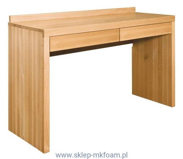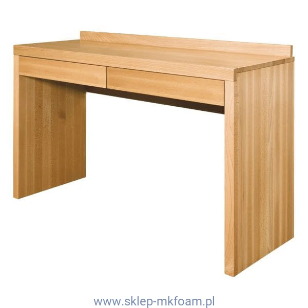 Prosta Toaletka z litego drewna bukowego. Pod obszernym blatem zaprojektowano dwie pojemne, bezuwchytowe szuflady, w których pomieszczą się wszelkie przybory. Dzięki prostej bryle idealnie wpasuje się do nowoczesnych i klasycznych pomieszczeń.