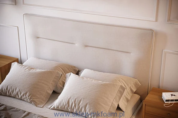 Zagłówek w obiciu z tkaniny meblowej.
